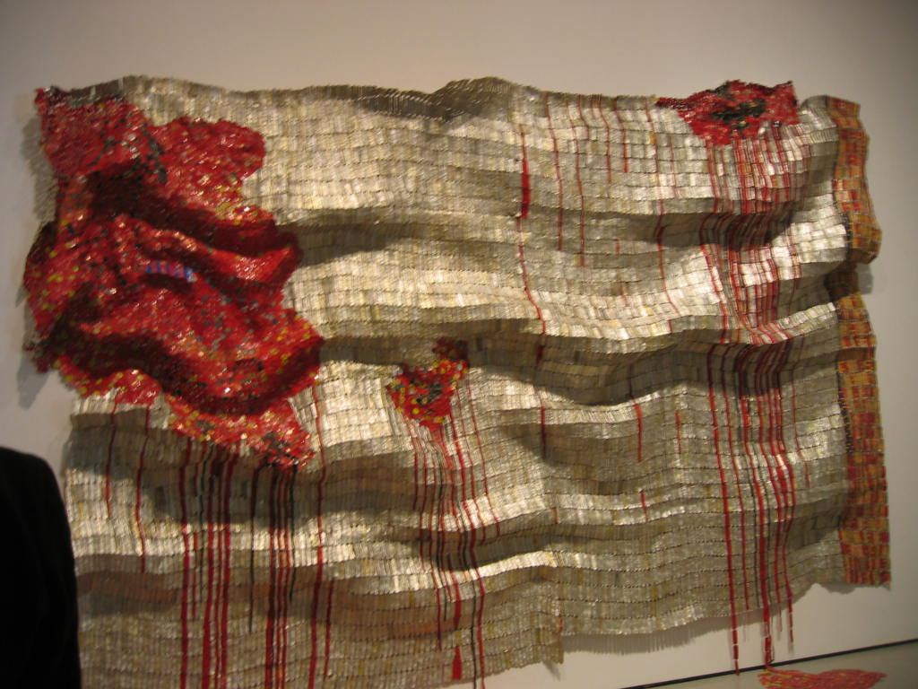 Y sobre todo ésta, titulada Bleeding Takari II, 2007, del artista ghanés El Anatsui. Alambres de cobre y aluminio. Qué fuerza tiene.