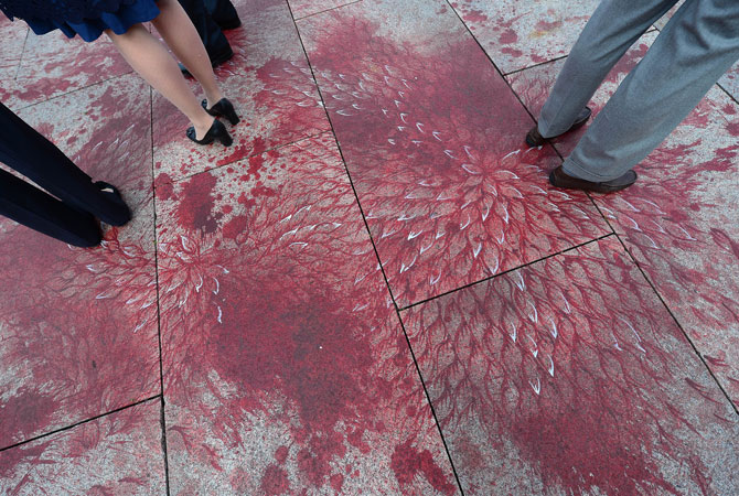 Pero lo mejor de todo en el Metropolitan estaba esta vez arriba, en el jardín de la azotea. La obra está plasmada en el suelo y es del artista paquistaní Imran Qureshi. Hice varias fotos con mi vieja Canon que hace fotos de pobre calidad, como ésta: