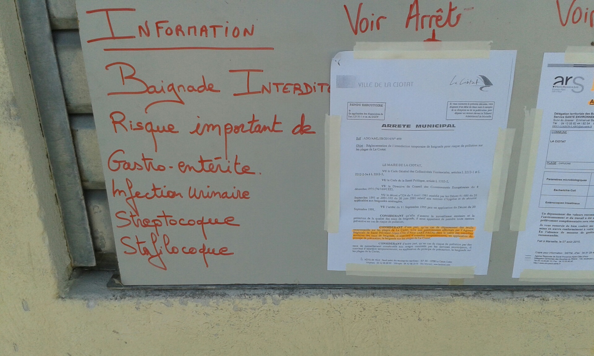 No es ningún secreto que estamos convirtiendo los mares en unas cloacas, y todo el mundo sabe (¿lo saben?) que el Mediterráneo es el mar más sucio del mundo, pero ¡cómo estarán de mal las cosas que en plena temporada se presentan casos como estos! A pesar de la inmundicia, normalmente tratan de mantener el nivel de contaminación bacteriana en un grado no del todo intolerable con la salud humana, pero al parecer en La Ciotat ese día no había sido posible. ¡Ups!