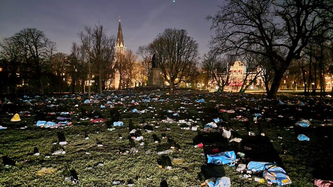 “Soy optimista porque sé lo que la tecnología y la gente son capaces de hacer. Me llena de esperanza el entusiasmo que veo, sobre todo entre los jóvenes, por resolver este problema”, dice BG casi al final del libro. Bueno, cada uno ve lo que quiere ver. A propósito de las jóvenes generaciones, la Generación Z, como se les llama a los menores de 25, mi impresión es que el porcentaje de estos jóvenes con conciencia de la crisis climática y compromiso para hacer algo (las Greta Thunberg) es mínimo, por desgracia. Se tiende a acusar solo a los mayores de la contaminación y de la irresponsabilidad hacia el planeta, pero la verdad es que todos somos por igual responsables. En esta foto del 24 de febrero pasado se aprecia cómo quedó el Vondel Park de Ámsterdam después de un encuentro festivo de jóvenes.
