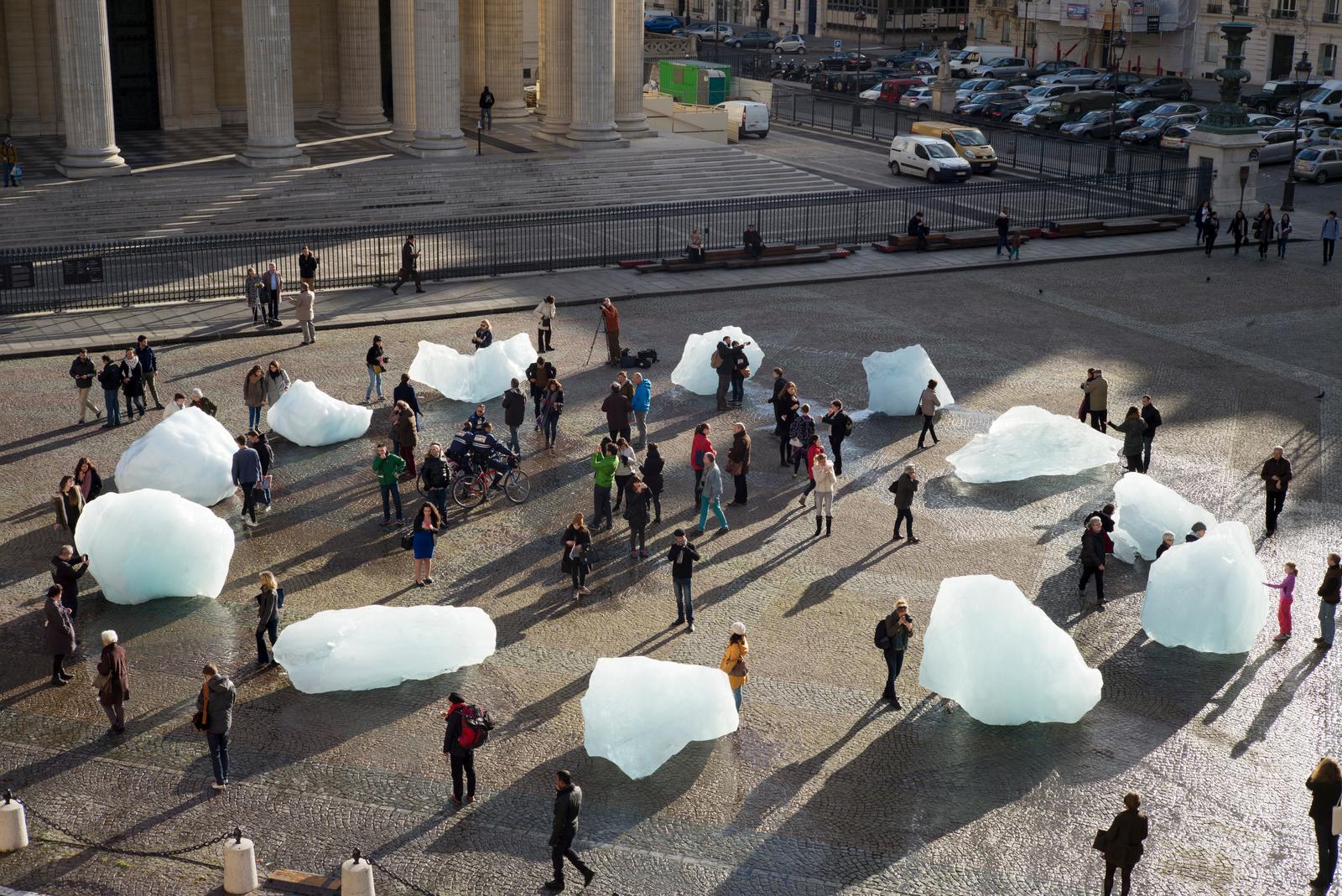 Uno de los más famosos artivistas hoy día podría ser el danés Olafur Eliasson, que concibió una obra como Ice Watch (2014) para llamar la atención sobre los efectos del cambio climático. Una instalación de doce enormes bloques de hielo, que se desprendieron de la capa de hielo de Groenlandia, dispuestos como números en el cuadrante de un reloj. Al derretirse paulatinamente, la instalación (que se expuso en ciudades como París y Londres) sugiere al espectador un testimonio tangible y directo de los efectos del cambio climático.