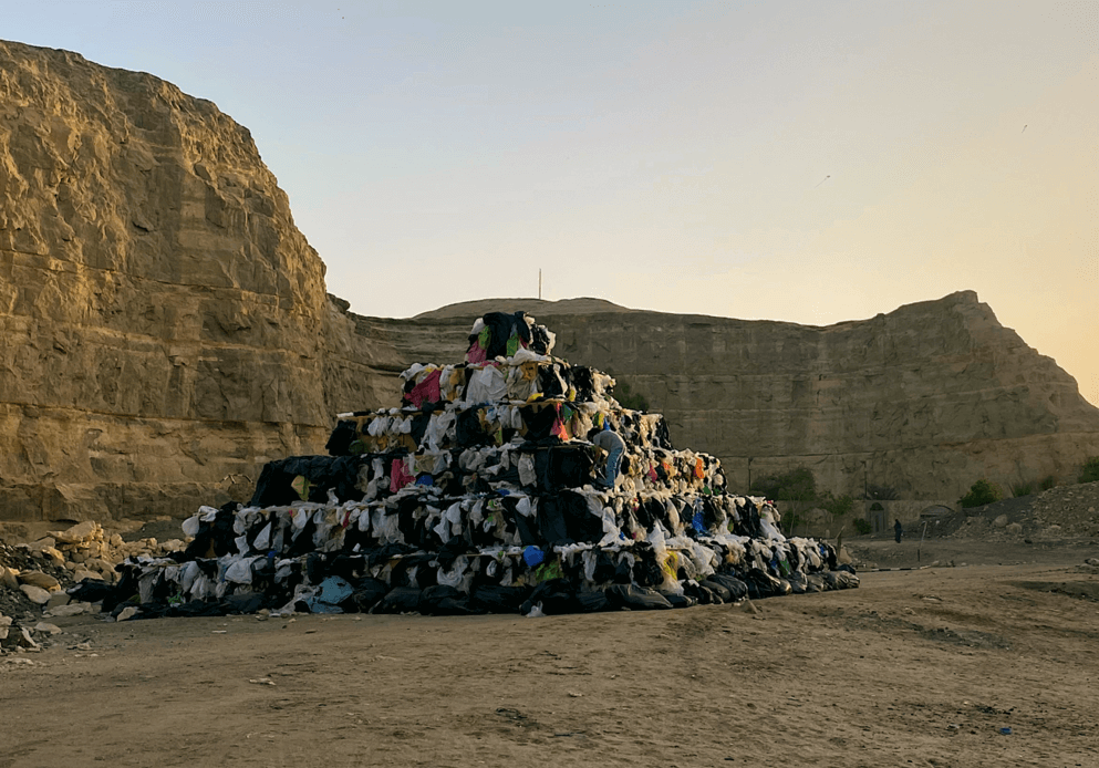 Pyramide of Garbage, Instalación en El Cairo de la artista Bahia Shehab, en https://fineacts.co/pyramids-of-garbage – en este link se puede ver el proceso de creación de la pirámide.