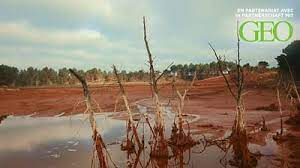 En el primero, Lodos radioactivos, en el sur de Francia, vemos lo que parece un espectacular lago de color rojo, que en verdad es un desecho industrial que se ha transformado en una charca de lodo que contiene una enorme cantidad de metales pesados. Los habitantes de la zona inhalan esa contaminación de manera permanente, y con el viento se traslada a los cultivos aledaños. La gente nombra el sendero que lleva al lugar, la ‘ruta del cáncer’, por la frecuencia con que se producen casos de esta enfermedad entre la población. Es chocante enterarse que desde los años 1960, esta industria está vertiendo sus residuos en el Mar Mediterráneo, en la localidad de Cassis, una de las zonas más turísticas de la Costa Azul. La superficie del agua se ve todavía azul, pero todo el suelo marino de la región está teñido del mismo color rojo ocre del barro de las imágenes.