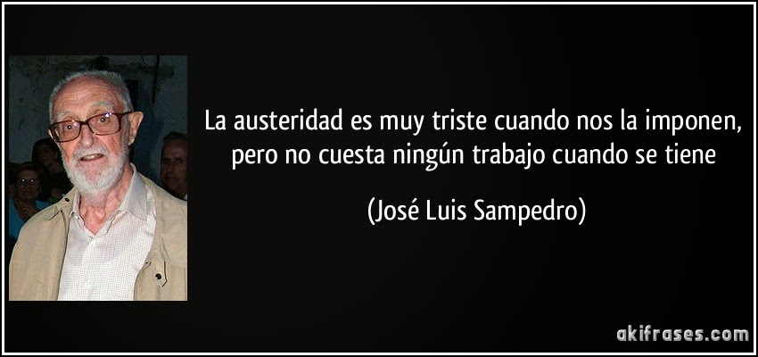 El problema con la palabra ‘austeridad’ es que por lo general tiene mala reputación. A ver: viene del latín austeritas, que quiere decir, difícil, áspero, seco. Austero es lo que carece de adornos, de excesos y se conforma con lo mínimo. Pero la austeridad tiene también connotaciones positivas, como la moderación, la mesura y la prudencia. Como dicen que decía Epicuro, “¿Quieres ser rico? Entonces no te esfuerces en aumentar tu riqueza, sino en disminuir tu avaricia”.